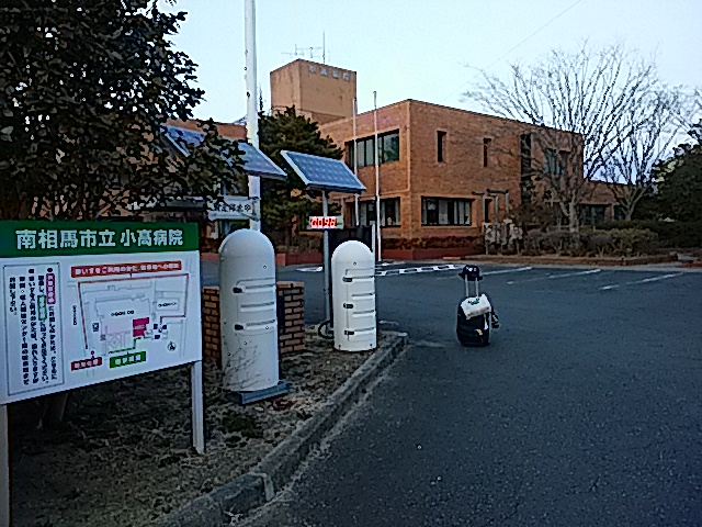 睦月の空のもと、地域医療を推進する南相馬市立小高病院で福島県、南相馬の復興を祈る日体柔整バック